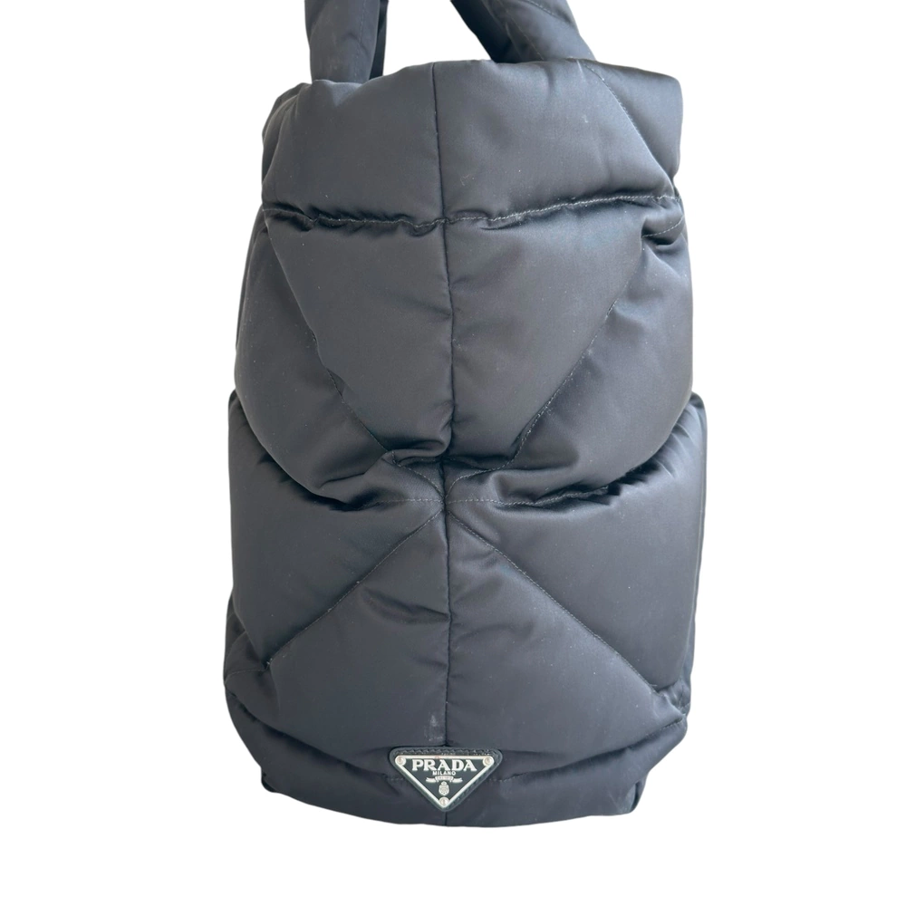 Acompanha: - 01 Bolsa Prada modelo Buffer Tote confeccionada em tecido Re-Nylon preto, metais prateados;